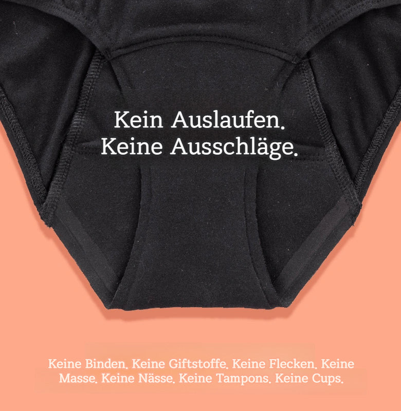Auslaufsicher keine Slipeinlage nötig bis zu 12 Stunden Tragezeit für 100 Waschgänge geeignet. Auslaufsicher keine Slipeinlage nötig bis zu 12 Stunden Tragezeit für 100 Waschgänge geeignet.